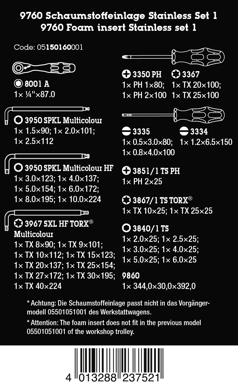 Wera 150160 Pěnová vložka 9760 Nářadí z nerezové oceli pro univerzální použití Sada 1 - 36 ks (W05150160001)