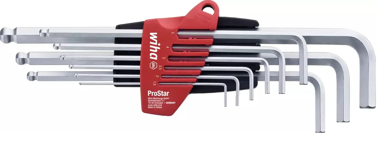 Sada zástrčných šestihranných klíčů Wiha 07185 obsahuje 9 dílů v rozsahu 1,5 až 10 mm, vhodných pro přesné utahování i povolování šroubů s vnitřním šestihranem. Ergonomický tvar usnadňuje manipulaci a skladování.