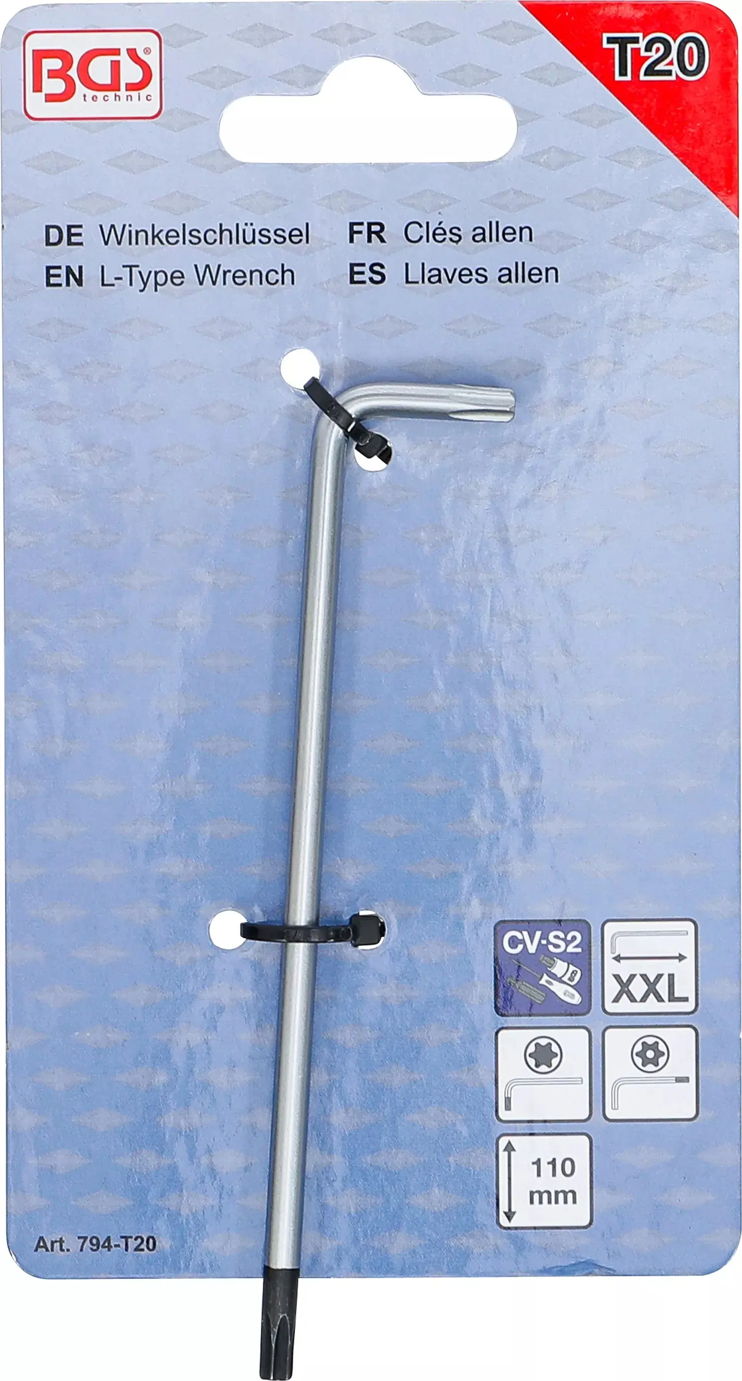 Zástrčný klíč T-profil T20 BGS100794-T20 velmi dlouhý (pro Torx) s otvorem/bez otvoru (BGS100794-T20)