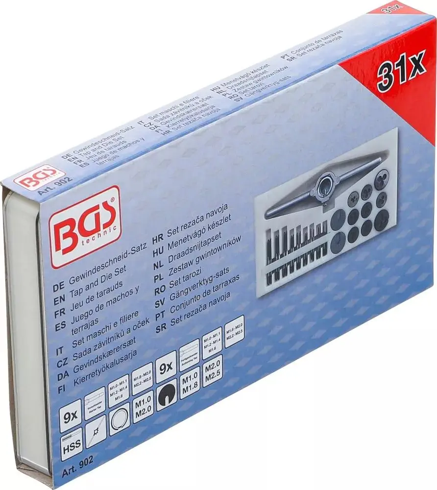 • Sada 31 kusů závitovacích nástrojů obsahuje zvláště malé velikosti závitníků