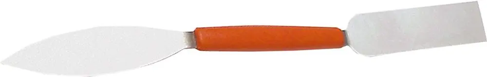 Provedení: Z flexibilní kalené oceli, s jednou špičatě oválnou a jednou plochou stranou. Rukojeť potažená plastem.